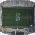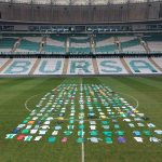 Bursa Atatürk Spor Kompleksi Matlı Stadyumu’nda zemine konulan yüzlerce imzalı forma gökyüzünden görüntülendi.