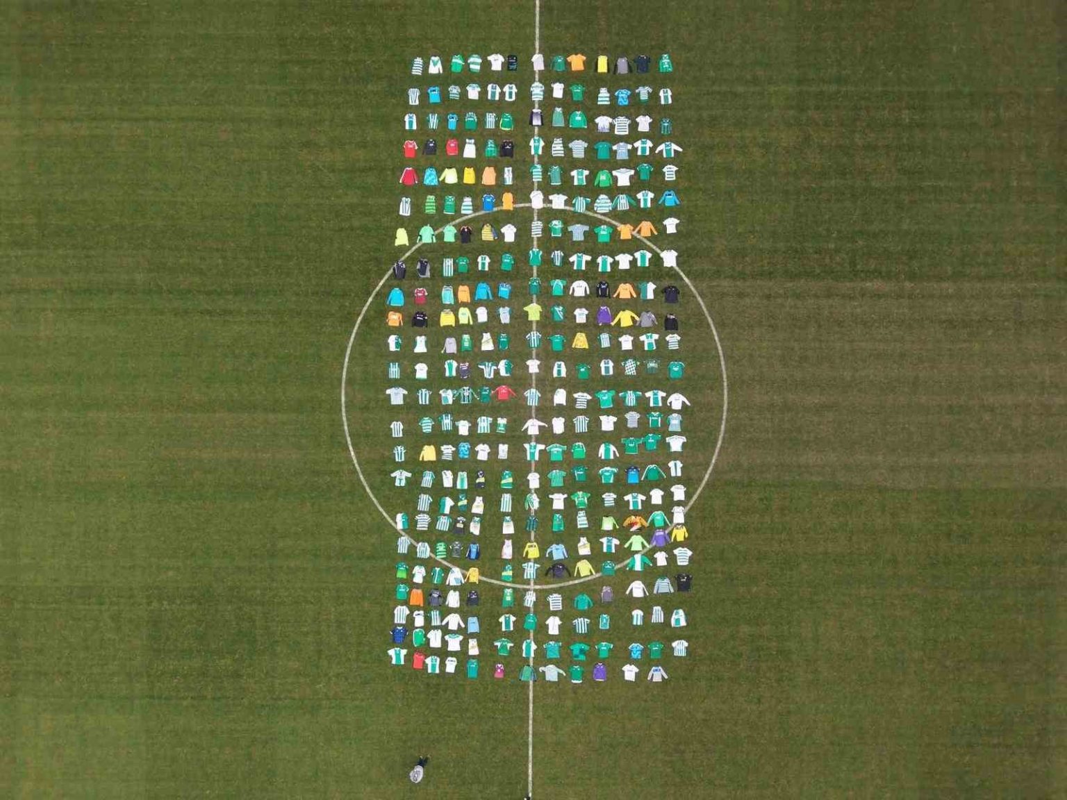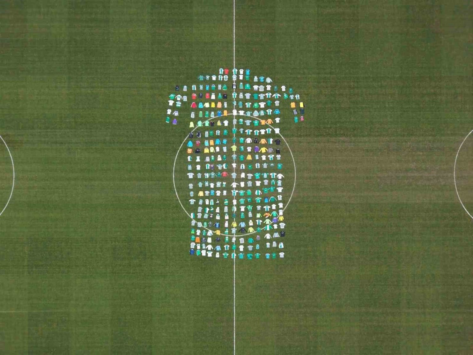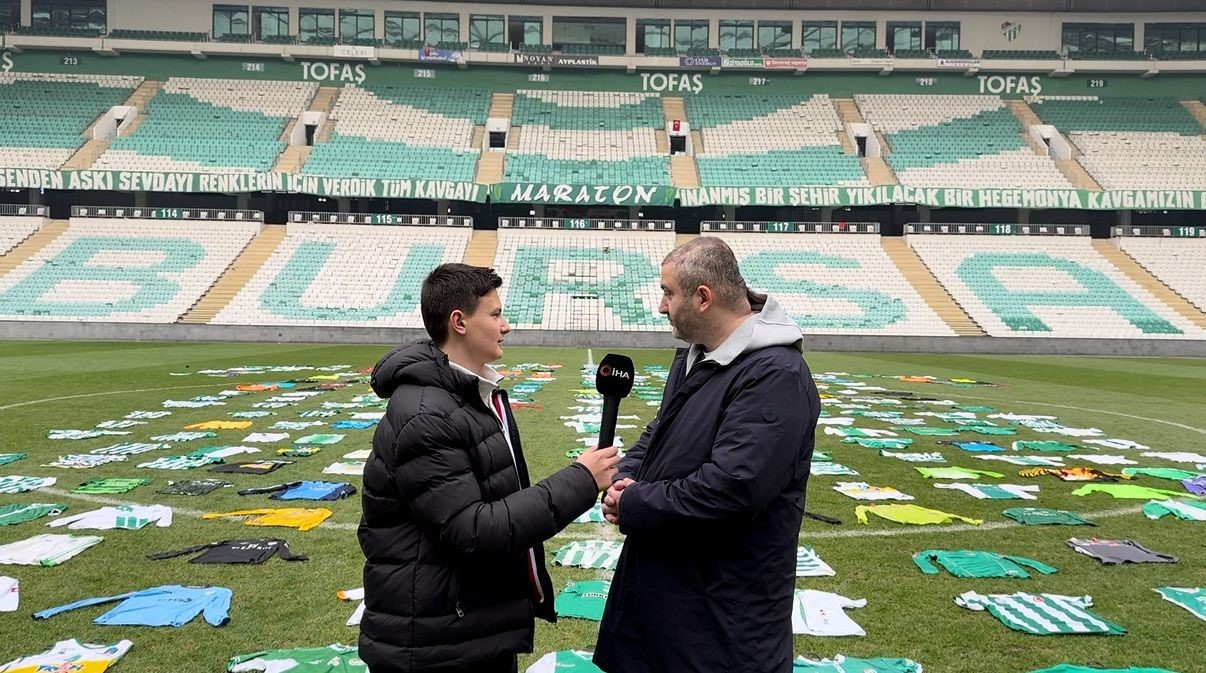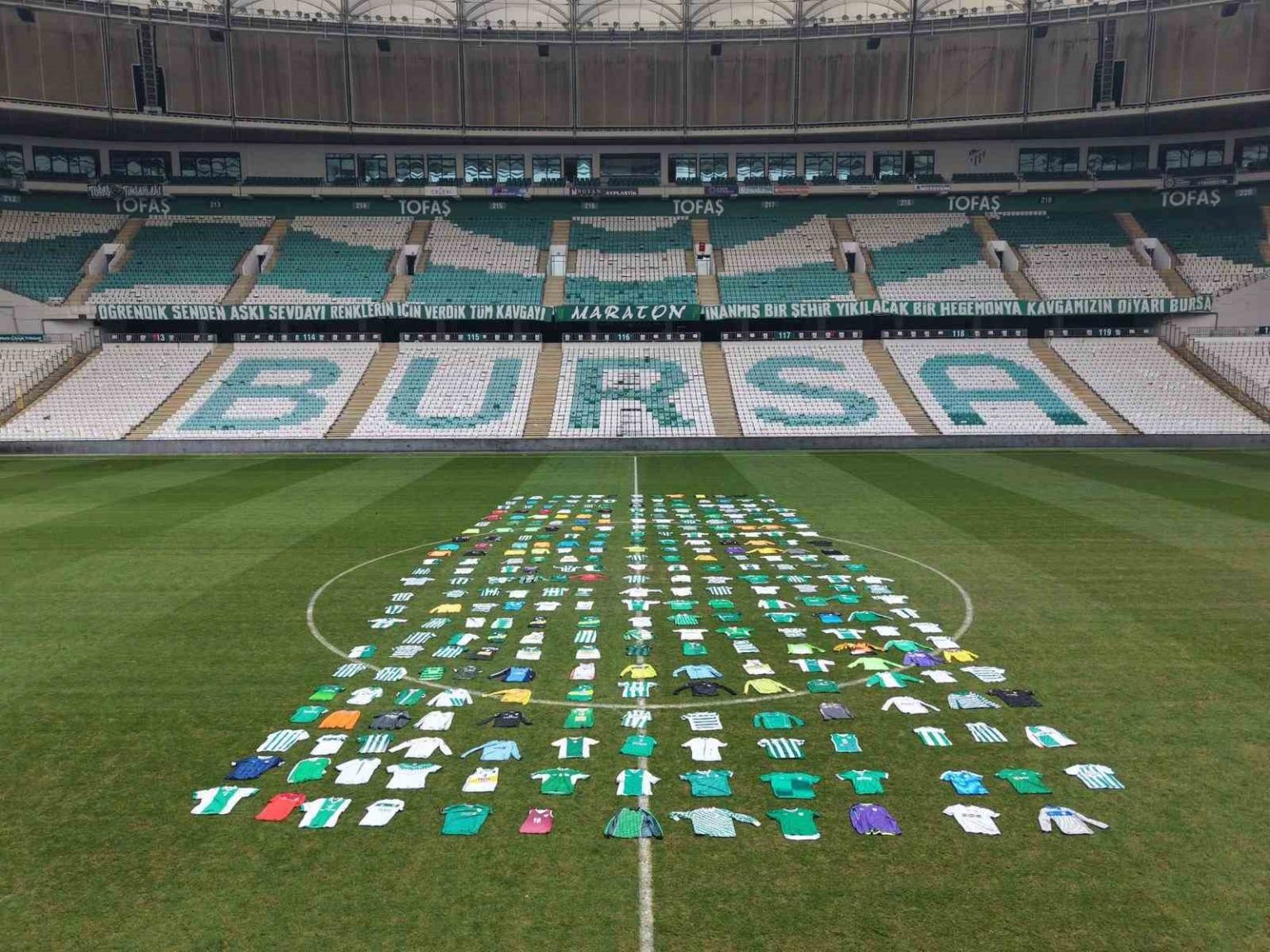 Bursaspor sahasında gerçekleştirilen özel çalışmada, koleksiyoner Mustafa Turan’a ait, bir kısmı maçlarda giyilmiş, bir kısmı ise imzalı koleksiyon formalarından oluşan 308 forma sahada çim zemine dizilerek koreografi oluşturuldu.