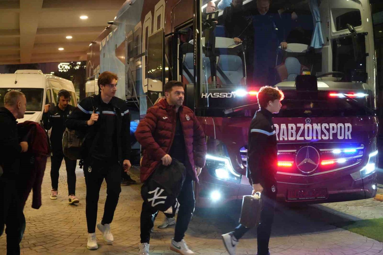 Galatasaray ile Trabzonspor, Türkcell Süper Kupa yarı finalinde karşı karşıya gelecek. Gaziantep’in ev sahipliğinde gerçekleşecek olan maç 5 Ocak Pazartesi günü saat 20.30’da Gaziantep Büyükşehir Belediye Stadyumu’nda oynanacak. Dev maç öncesi Trabzonspor kafilesi, saat 16.00’da Trabzon Havalimanı’ndan kalkan özel uçakla Gaziantep’e ulaştı. Aprondan çıkış yapan bordo-mavili ekip konaklayacakları otele geçiş yaptı.