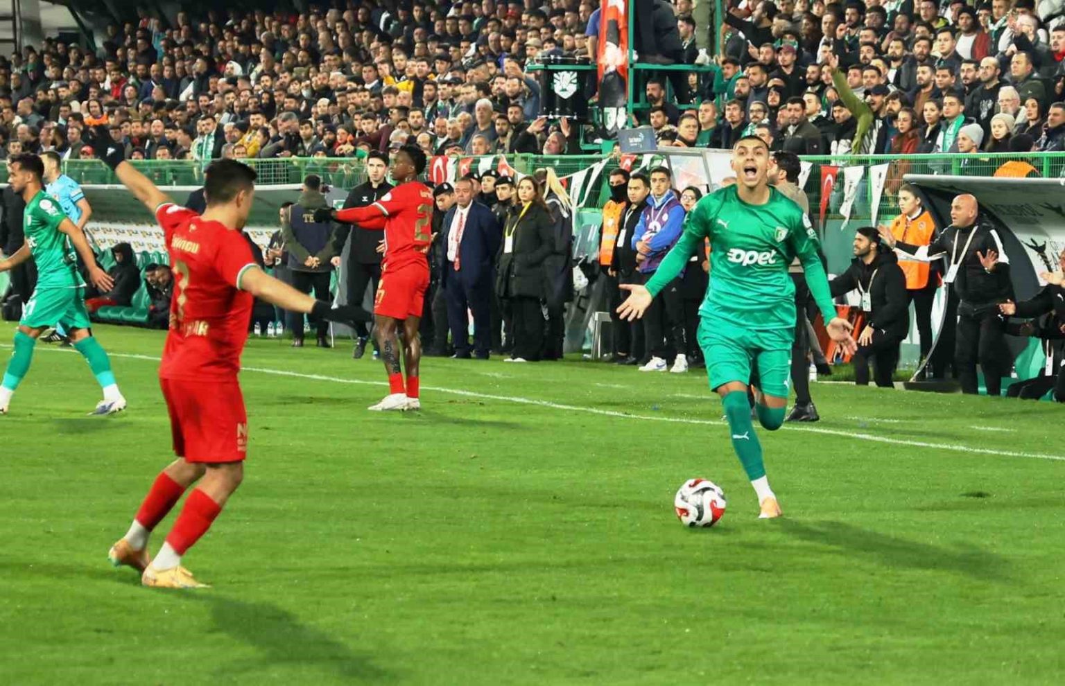 18. dakikada Bodrum FK’da Mert’in pasıyla buluşan Brazao’nun sert şutunda top üst direkten oyun alanına döndü.