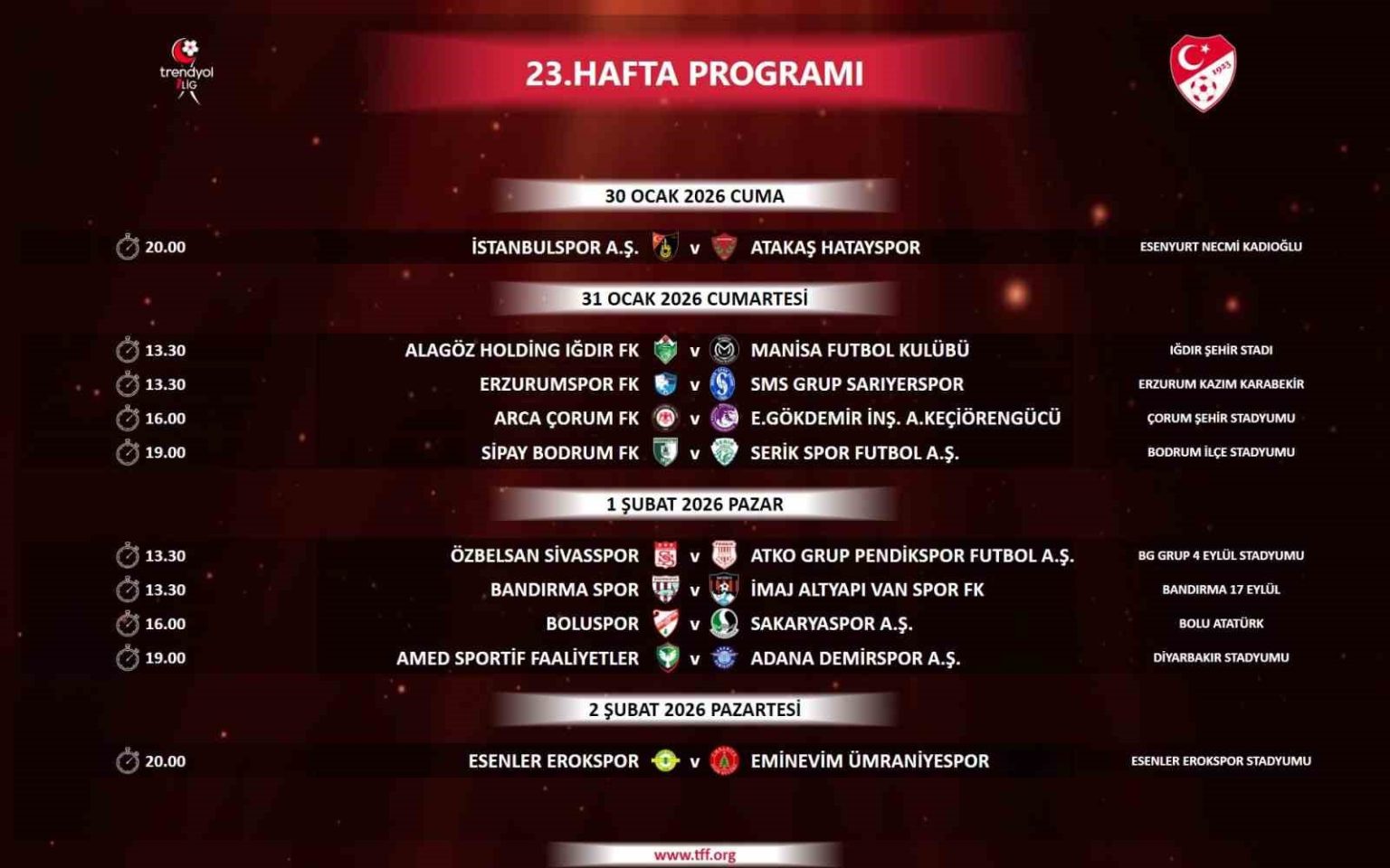 Trendyol 1. Lig’de 23-27. hafta programı şöyle: