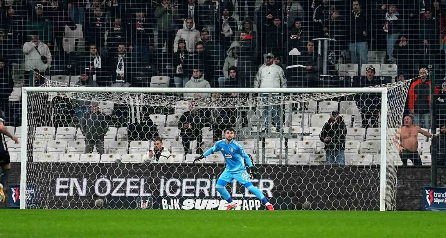 80. dakikada Deniz Türüç, ceza sahası dışı sol çaprazında Asllani’nin müdahalesiyle yerde kaldı. Hakem Batuhan Kolak, serbest vuruş kararı verdi.