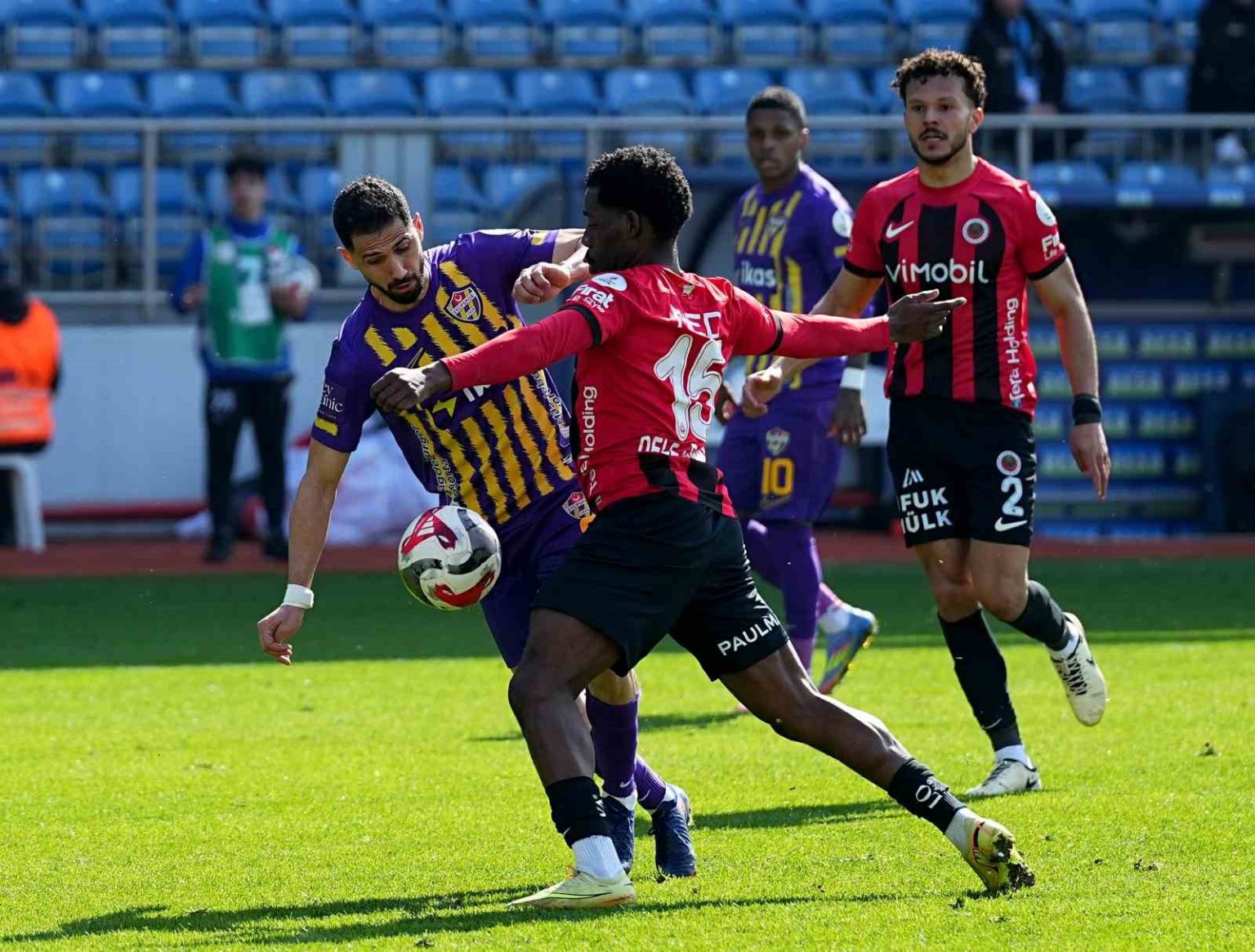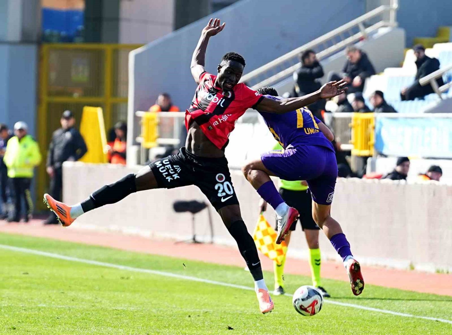 39. dakikada Gençlerbirliği atağında Göktan’ın ceza yayı solundan sert vuruşunda kaleci Jankat’ın çeldiği meşin yuvarlak üst direğe de çarparak kornere çıktı.