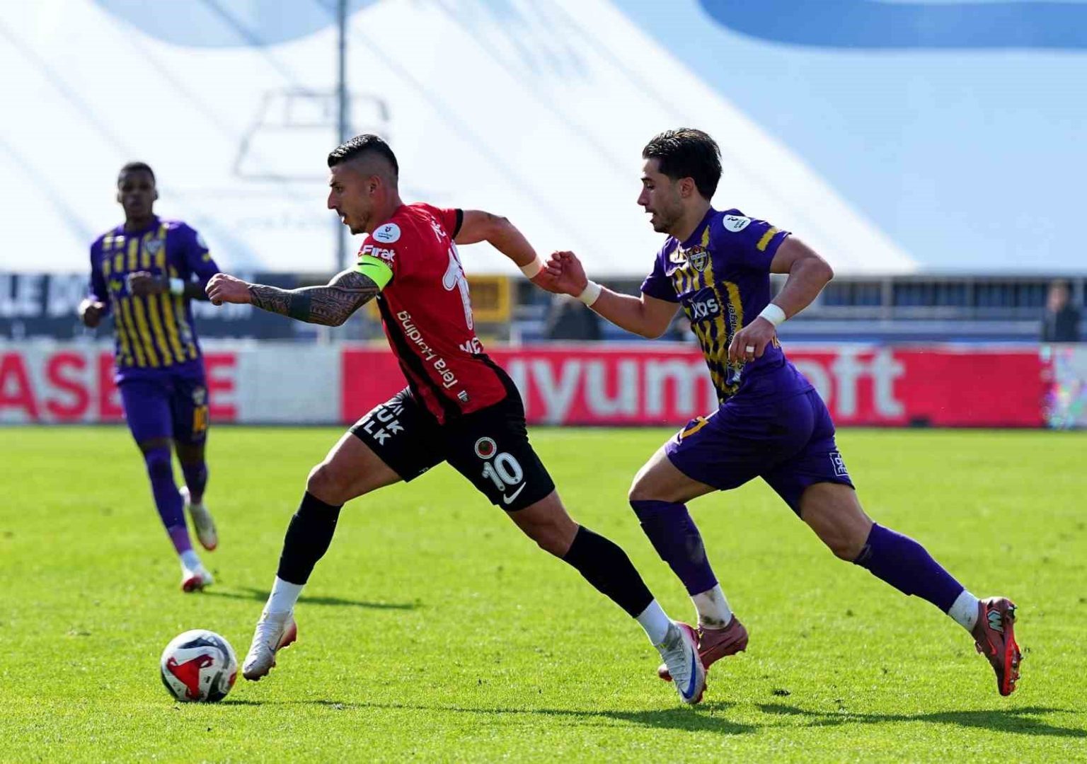 80. dakikada Metehan’ın ceza sahası dışı sol çaprazdan uzak direğe sert vuruşunda meşin yuvarlak az farkla auta çıktı.