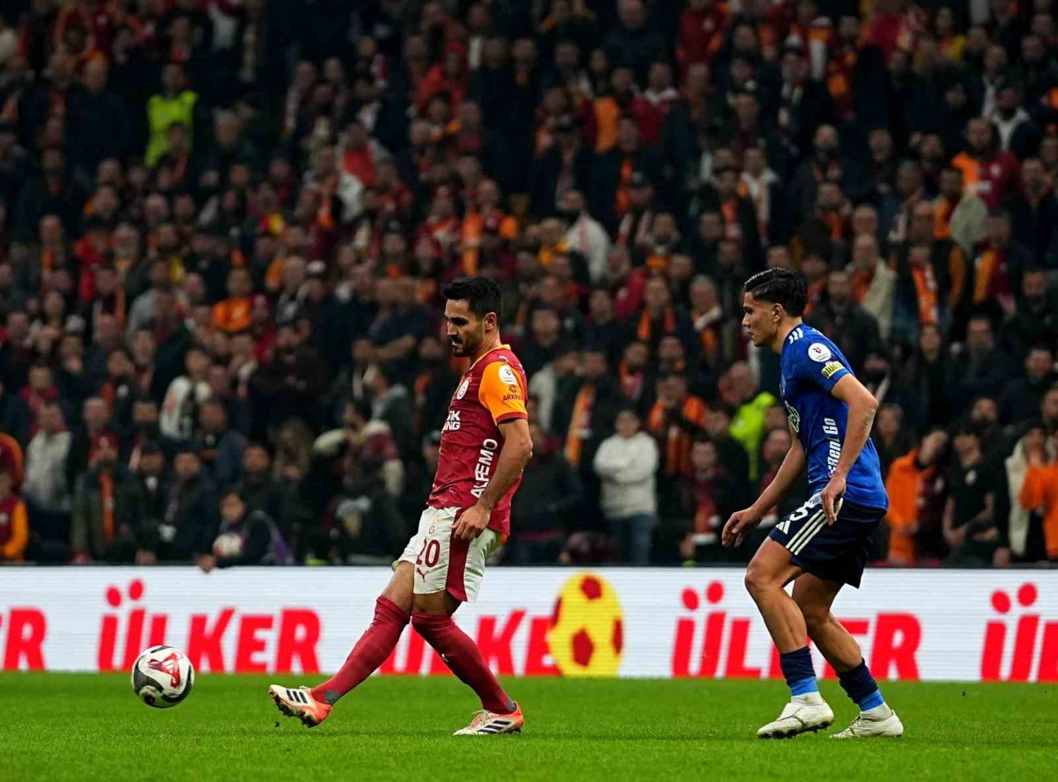37. dakikada Leroy Sane’nin derinlemesine pasında Yunus Akgün, ceza sahası içi sağ çaprazdan kaleciyle karşı karşıya pozisyonda yaptığı vuruşta kaleci Andreas Gianniotis meşin yuvarlağı çeldi. Pozisyonun devamında ceza alanı içi sağ çaprazda Barış Alper Yılmaz pasını Yunus Akgün’e bıraktı. Yunus’un ceza sahası içi sağ tarafından yaptığı ortada, arka direkte Rolland Sallai’nin kafa vuruşunda meşin yuvarlak üstten auta gitti.