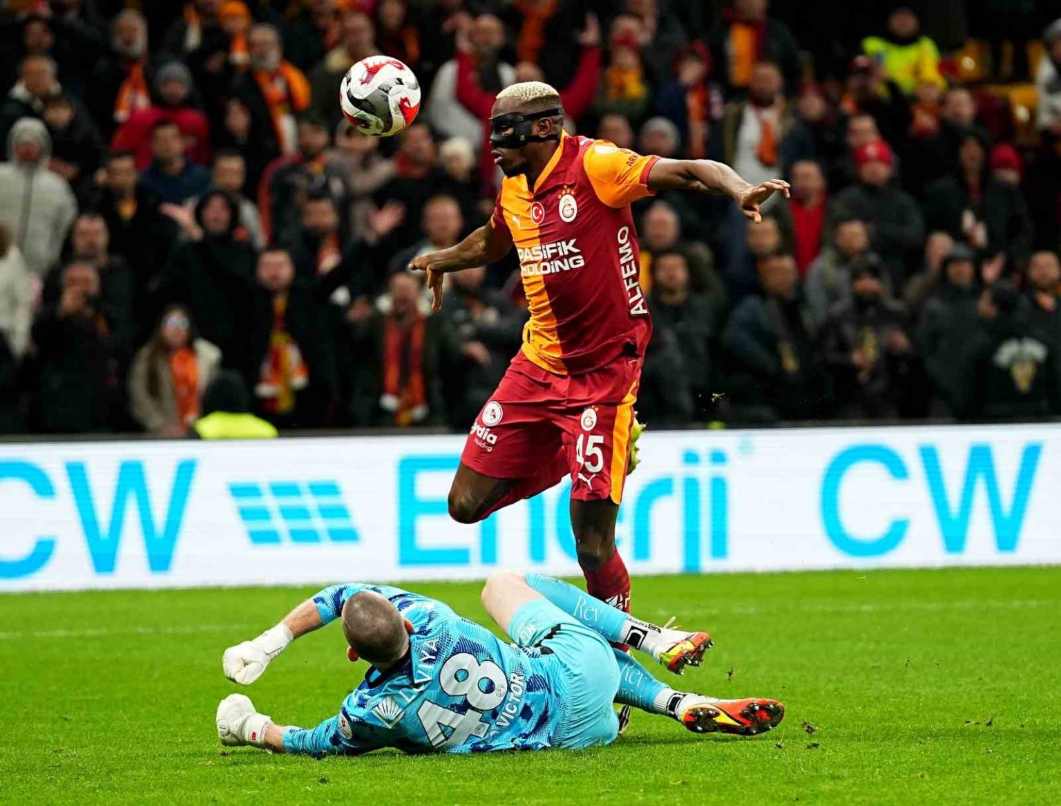 81. dakikada Sane’nin pasında ceza sahası içi sağ çaprazda topla buluşan Osimhen’in karşı karşıya yaptığı vuruşta kaleci Victor meşin yuvarlağı kurtardı.