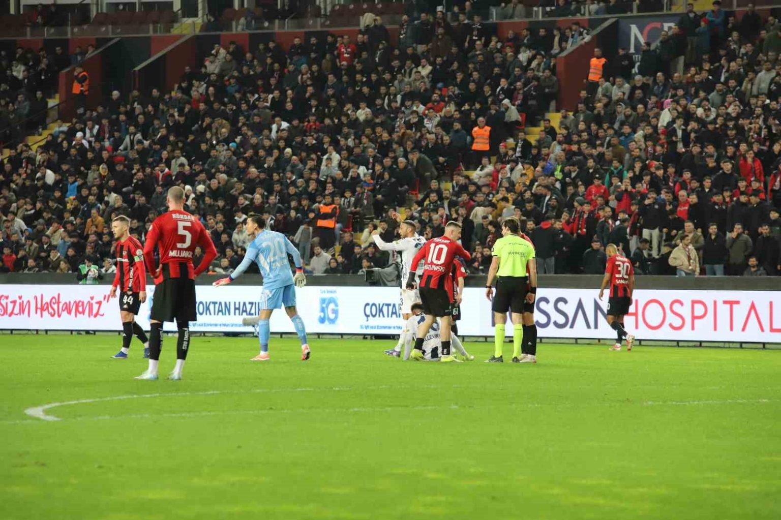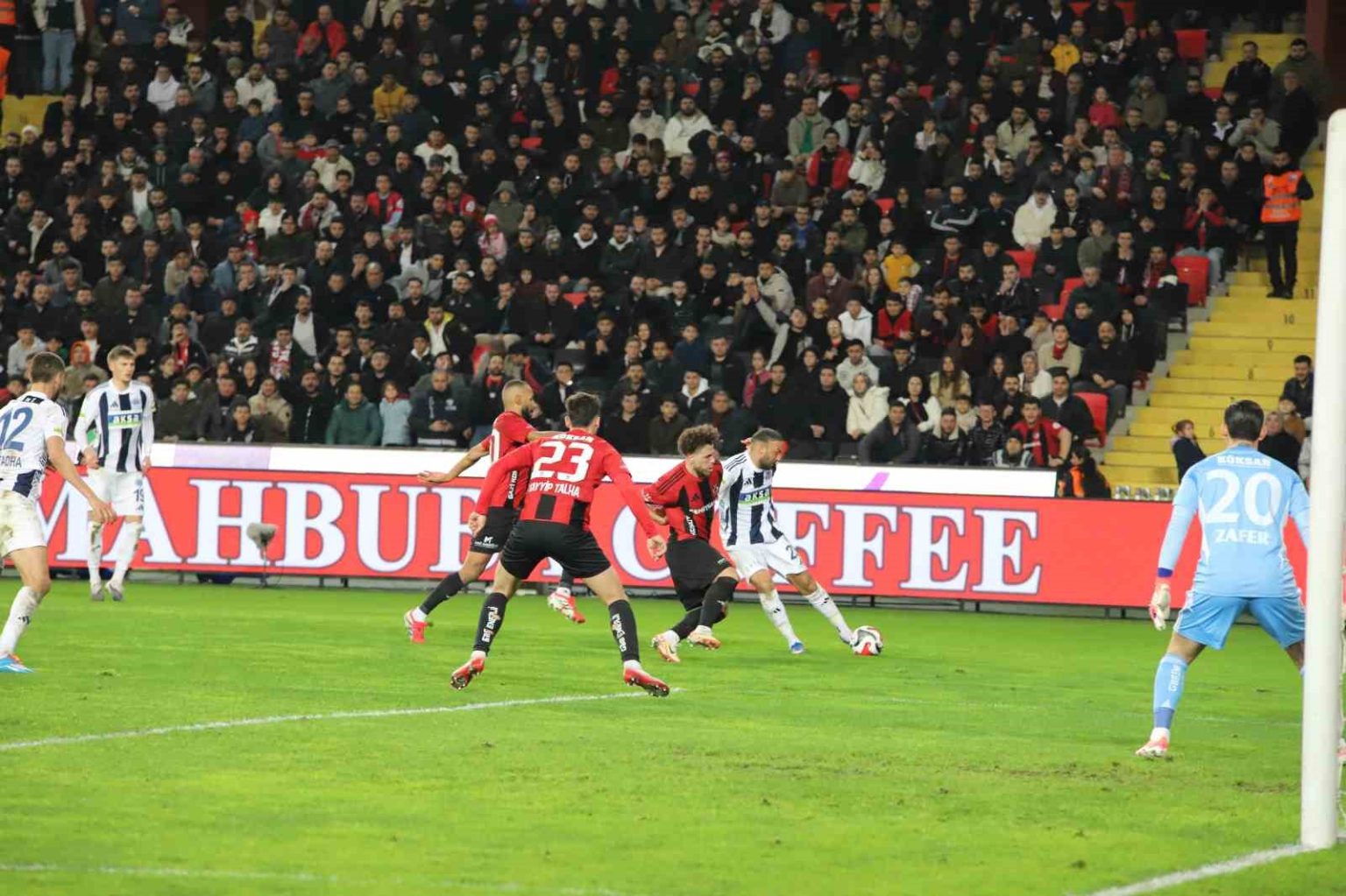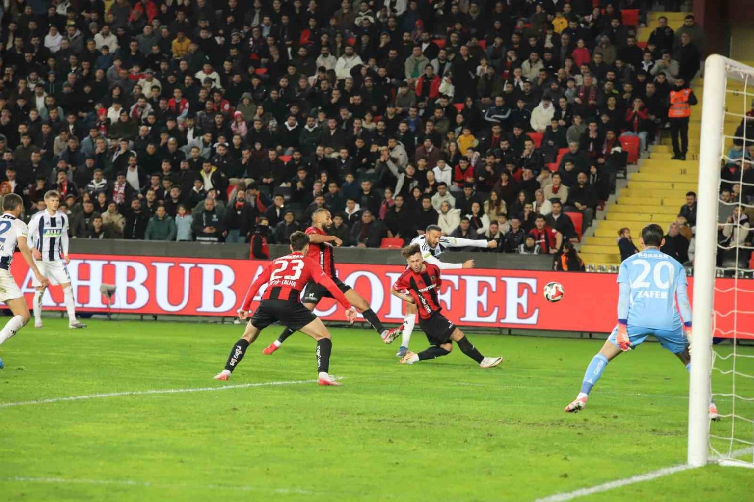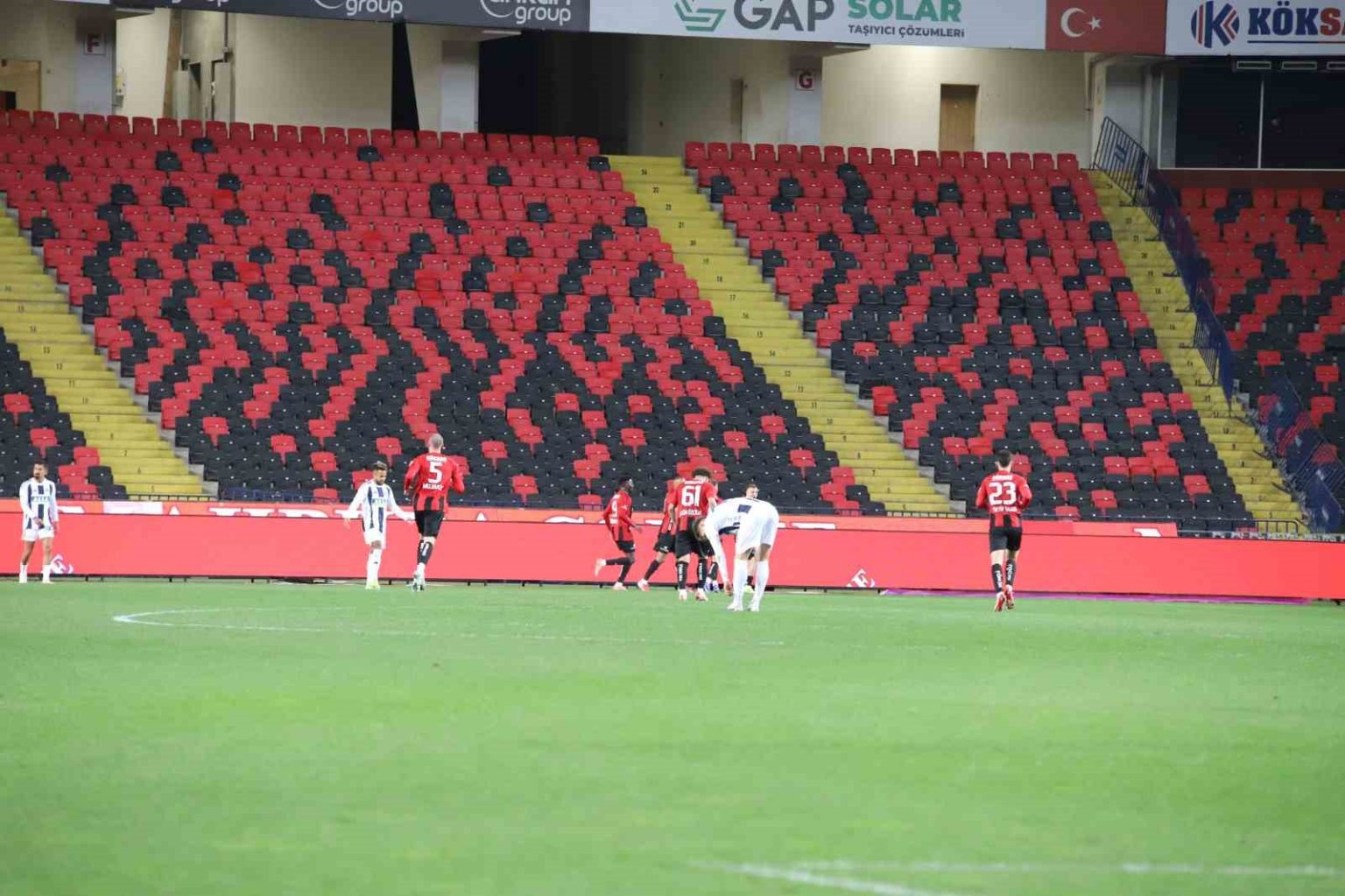41. dakikada yapılan VAR incelemesinin ardından Gaziantep FK’dan Drissa Camara, Kamil Ahmet’e yönelik sert müdahalesi nedeniyle direkt kırmızı kart gördü.