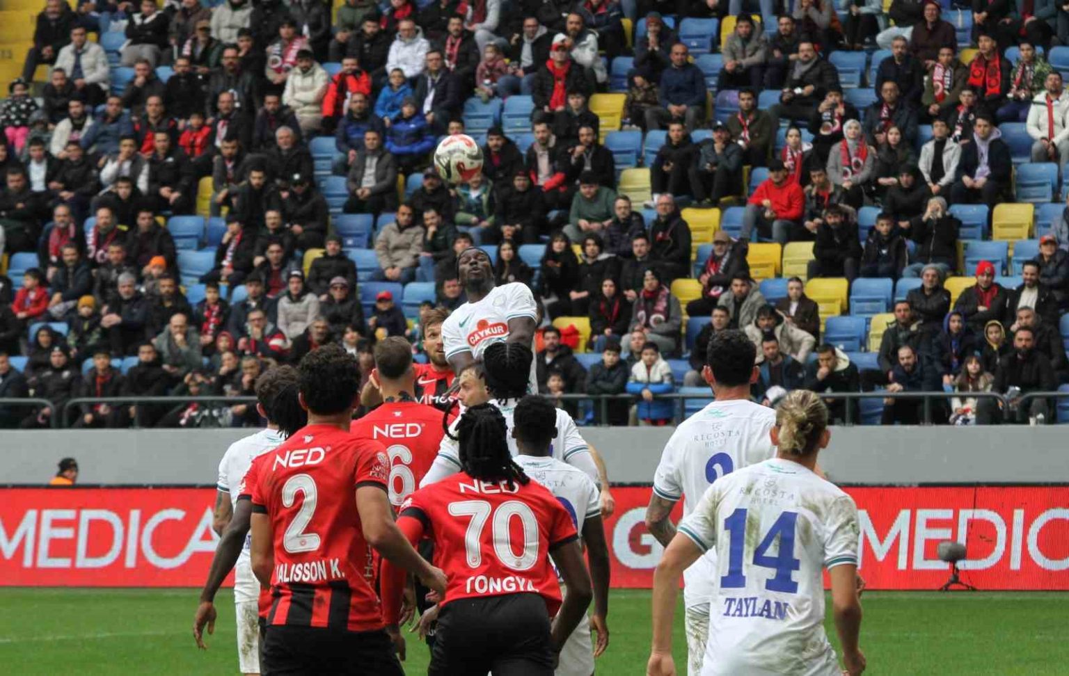 14. dakikada Gençlerbirliği’nin atağında Dele-Bashiru topu kazandı ve pasını sağ tarafındaki Oğulcan’a aktardı. Oğulcan’ın kale sahasına çevirdiği topa Rizespor savunmasında Samet, ters vuruş yaparak meşin yuvarlağı kendi ağlarına gönderdi.