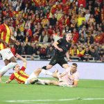 40. dakikada Uğurcan’ın kullandığı kale vuruşunda uzun gönderilen topu rakip ceza alanı önünde kontrol eden Sallai, ceza sahasına girerek sağ alt köşeye sert vurdu. Kaleci Lis’in son anda meşin yuvarlağı çeldi.