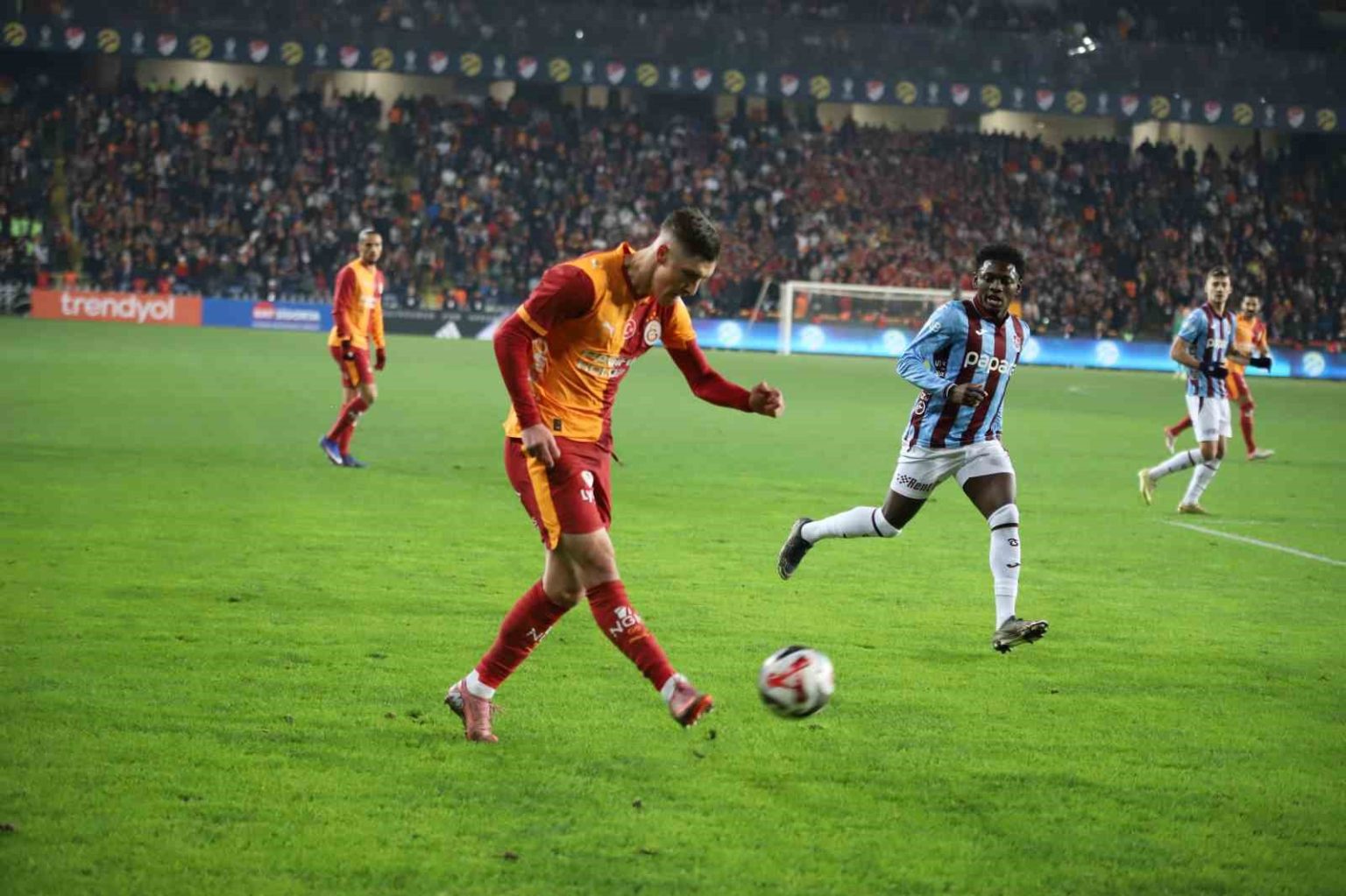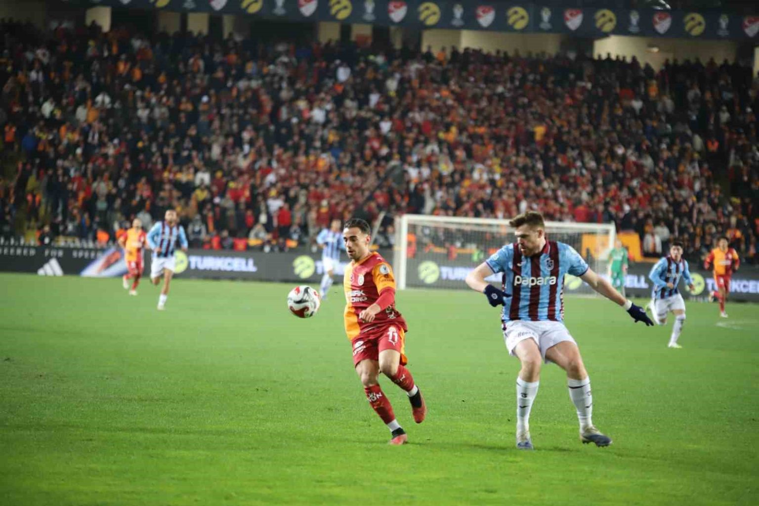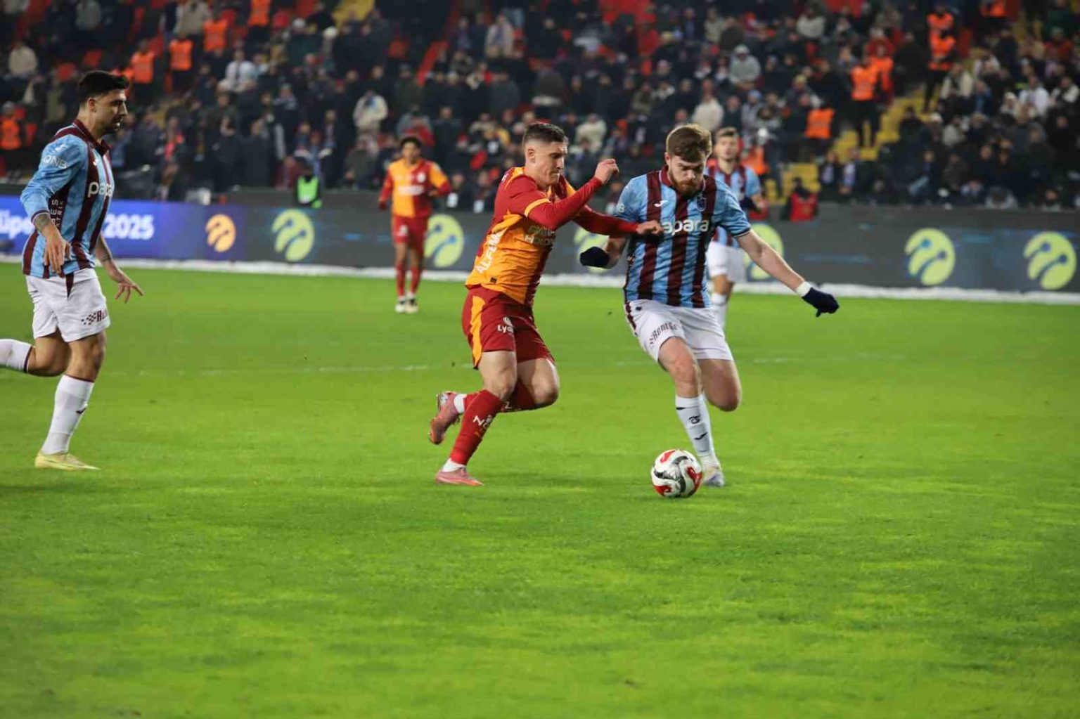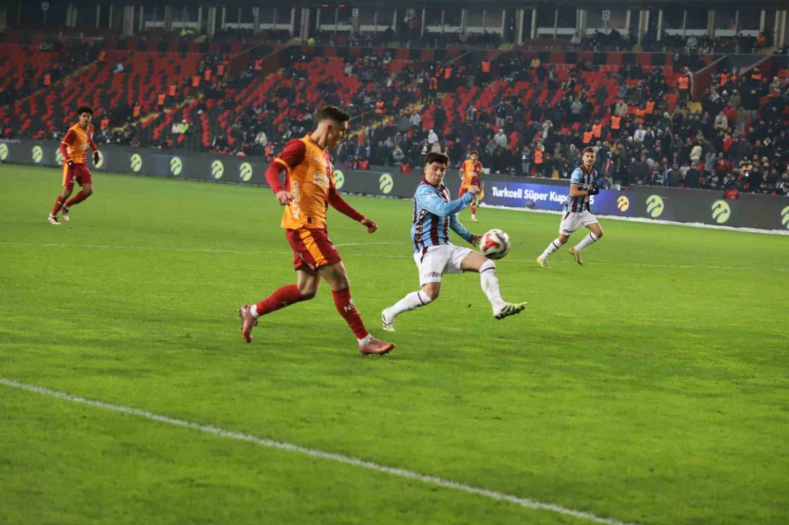 Turkcell Süper Kupa yarı finalinde Galatasaray ile Trabzonspor Gaziantep Büyükşehir Stadyumu’nda karşılaşıyor. Mücadelenin ilk yarısı Galatasaray’ın 2-0 üstünlüğüyle sona erdi.