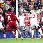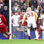 33. dakikada paslaşarak gelişen Liverpool atağında Wirtz, ceza yayı önünden pasını Szoboszlai’ye aktarırken, bu oyuncunun sert şutunda Uğurcan sağına gelen topu çeldi.