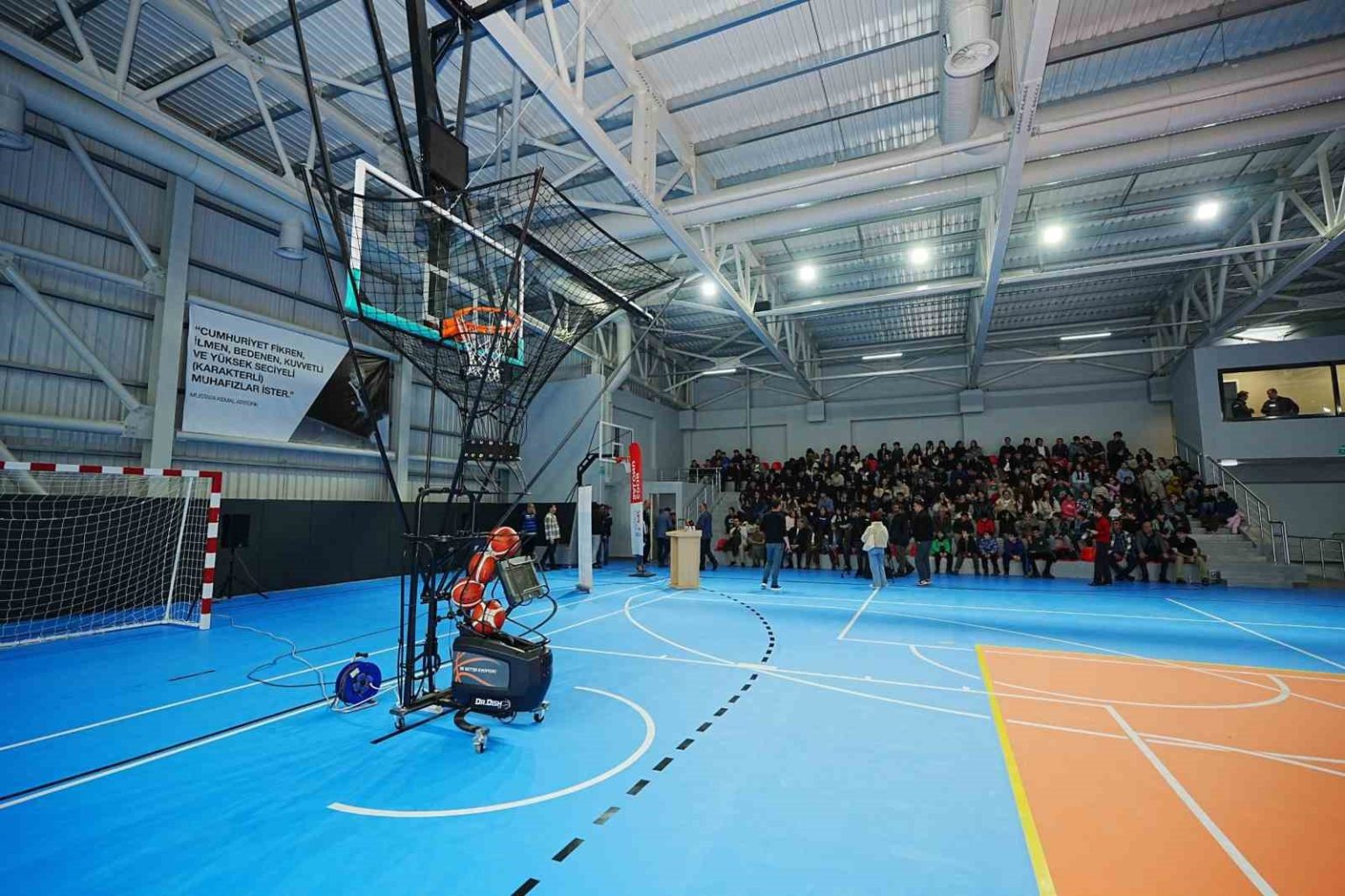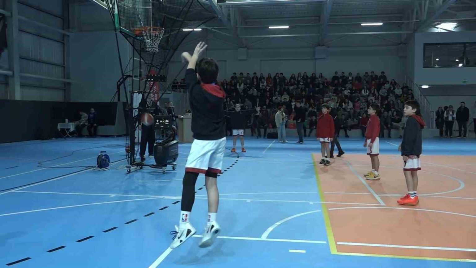 Uludağ İçecek Türk A.Ş., öğrenci ve genç sporculara basketbol şut makinesi hediye etti.