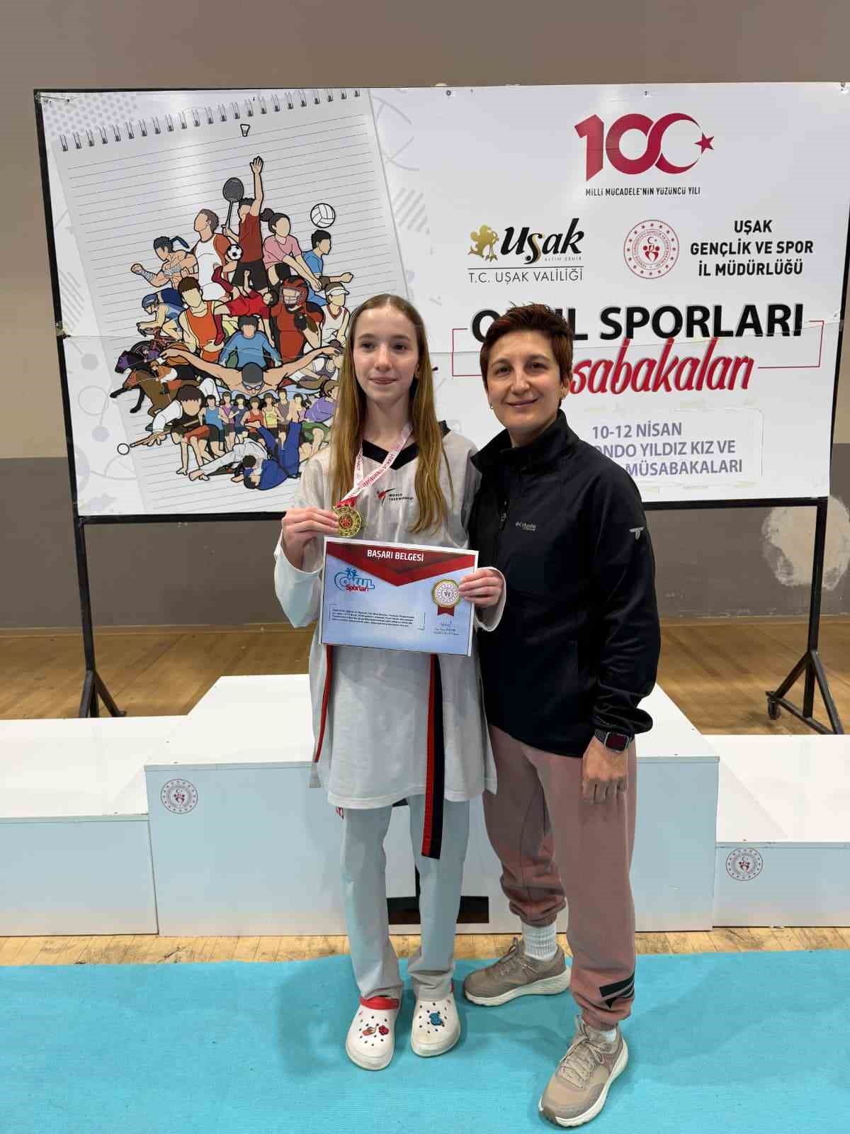 Yunusemre Belediyespor’un tekvandocusu Meyra Ak, Uşak’ta düzenlenen Okul Sporları Yıldızlar Grup Müsabakaları’nda 41 kiloda altın madalya kazanarak Manisa’nın gururu oldu.